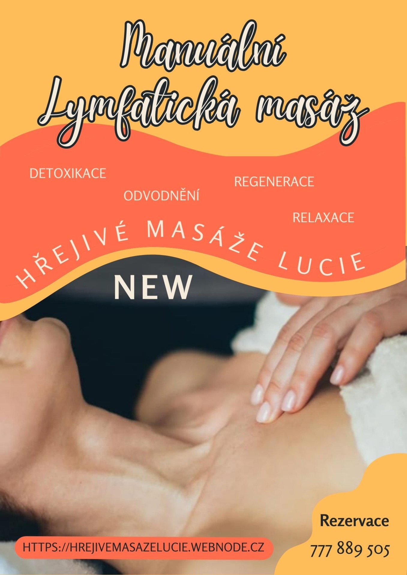 Lymfatická masáž celého těla: jemná hmatová technika úspěšná při otocích (lymfedému), je detoxikační, má anticelulitidní účinky, relaxační účinky.