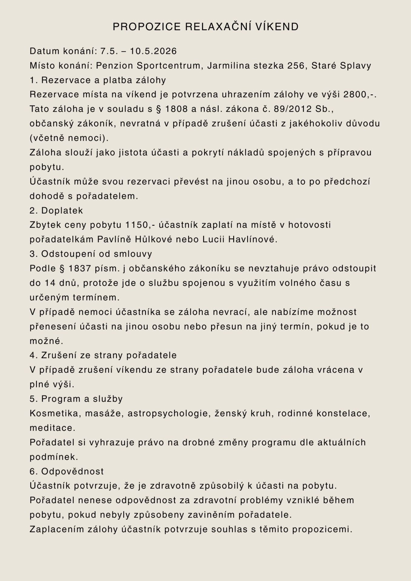 REZERVACE JSOU MOŽNÉ UŽ NYNÍ na tel. čísle 777 889 505 nebo 603 457 129